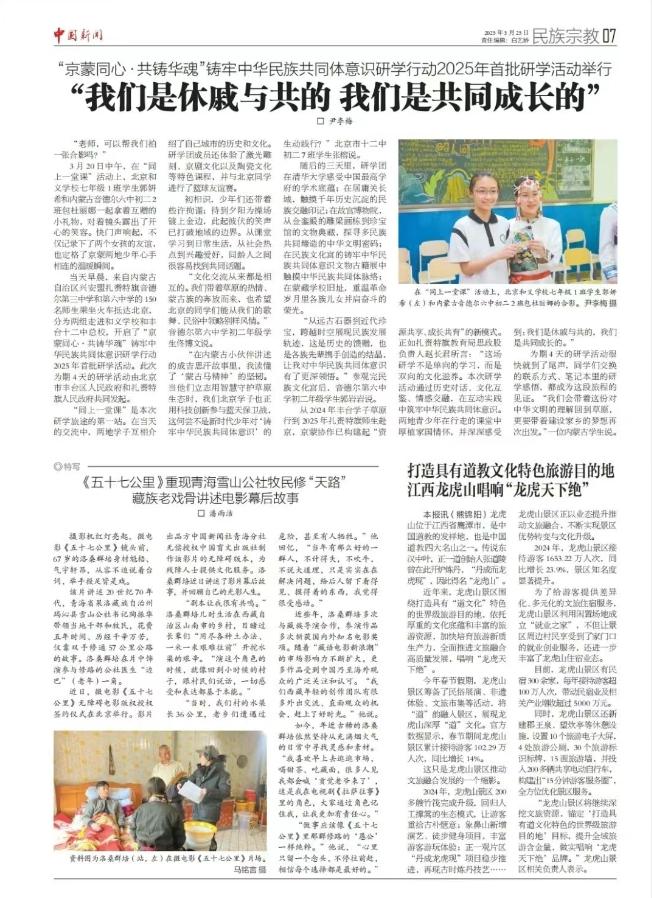 從2024年豐臺(tái)學(xué)子草原行到2025年扎賚特旗師生赴京,京蒙協(xié)作已構(gòu)建起“資源共享、成長共育”的新模式。正如扎賚特旗教育局思政股負(fù)責(zé)人趙長君所言:“這場研學(xué)不是單向的學(xué)習(xí),而是雙向的文化滋養(yǎng)。本次研學(xué)活動(dòng)通過歷史對(duì)話、文化互鑒、情感交融,在互動(dòng)實(shí)踐中鑄牢中華民族共同體意識(shí)。兩地青少年在行走的課堂中厚植家國情懷,并深深感受到:我們是休戚與共的,我們是共同成長的。”